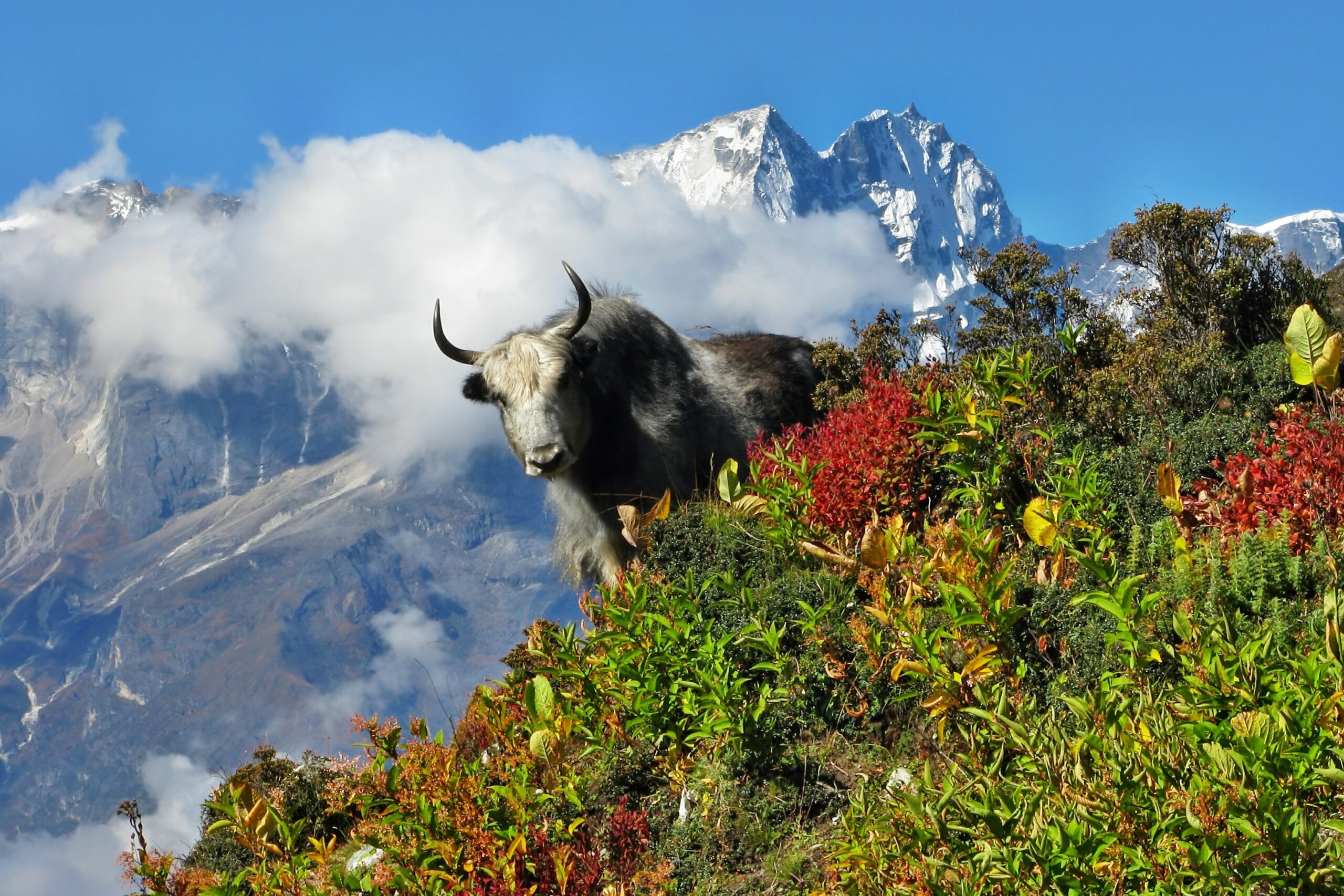 The animal and plant life you’ll see are not dissimilar to what’s in Langtang National Park — at least until you reach a certain elevation, past which point only errant snow leopards usually go. But the region surrounding Sagarmartha offers a great opportunity to observe the Sherpa culture, which produces the guides so important to expeditions up Everest, K2, and other peaks. Hub towns such as Namche Bazaar, the Sherpa capital — which sits in a bowl of beautiful mountain scenery at approximately 11,319 ft (3,450 m) — are well worth visiting. Saturday is market day in Namche, and you can experience Himalayan culture from both sides of the border as Tibetan merchants frequently visit the market.