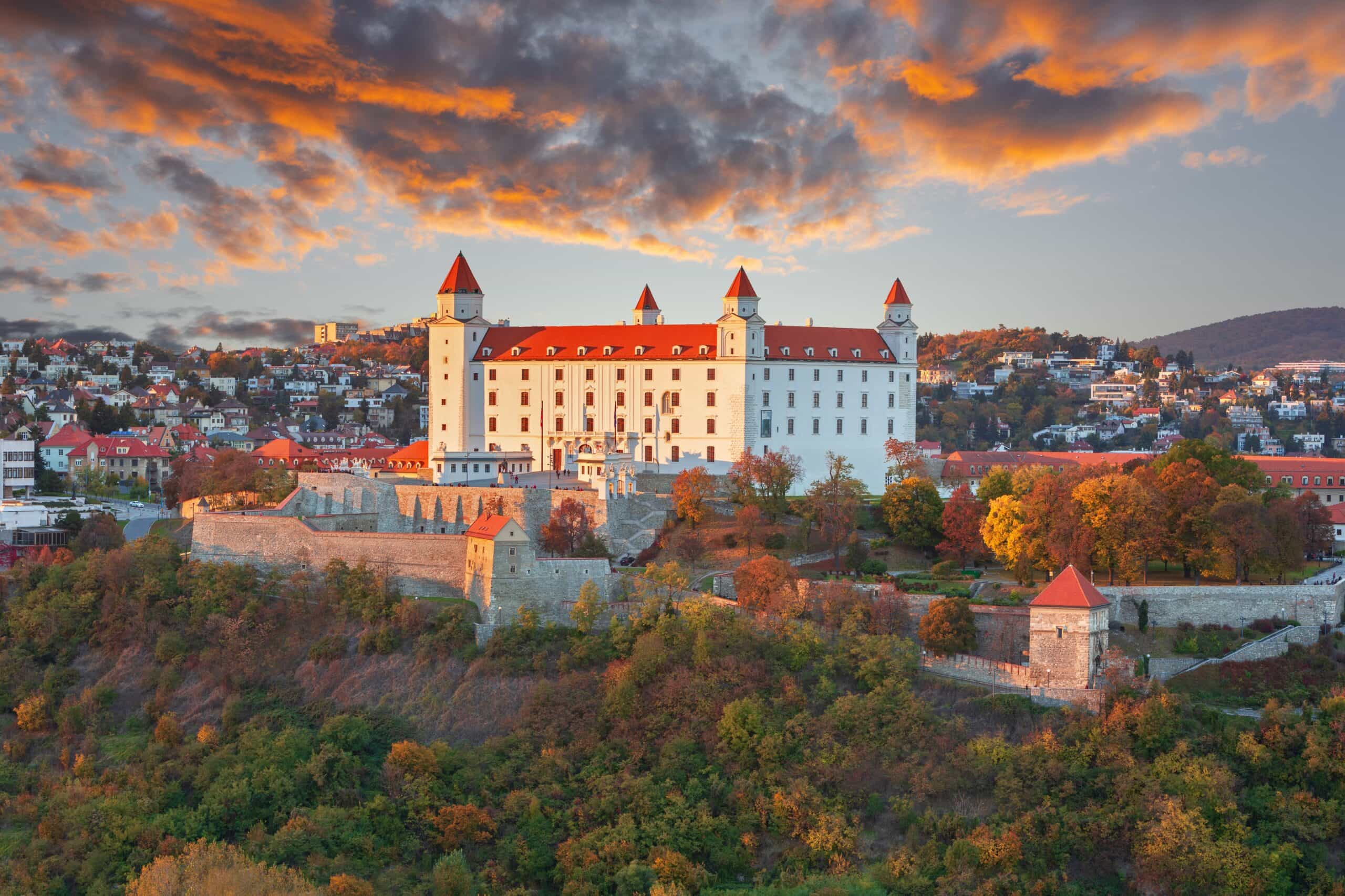 The eye-catching Bratislava Castle sits on a prominent hill overlooking the Danube, surrounded by trees, and is the city’s most inspired landmark. During the Kingdom of Hungary this was the seat of Hungarian kings and formed a key defensive stronghold.